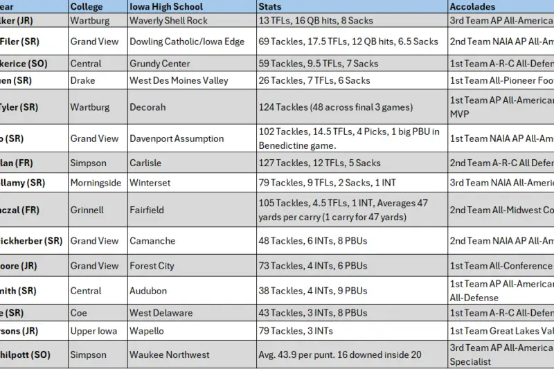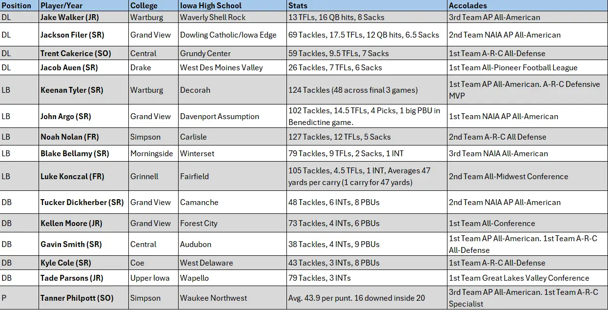 - A-R-C Postseason Football Awards – 39 Former Iowa High School Athletes Honored