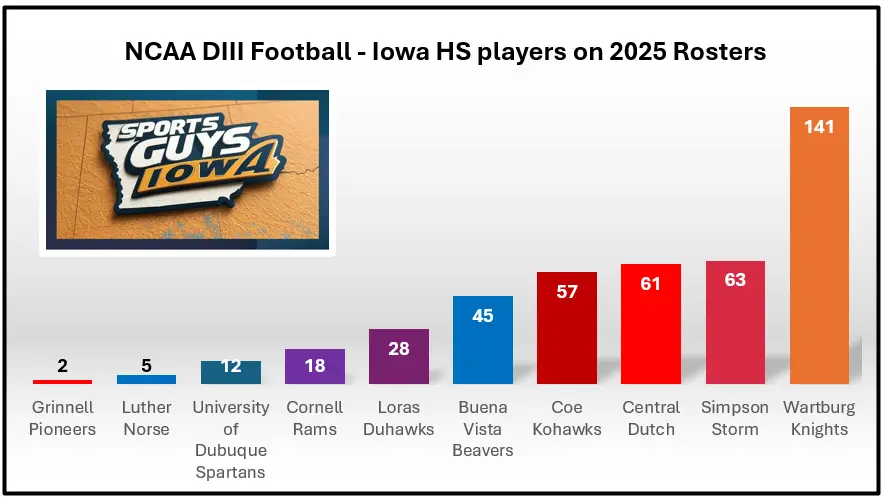 In our preseason Iowa Analysis for all 10 Iowa-Based NCAA DIII teams (which includes Grinnell and Cornell from the Midwest conference. There were when the season kicked off 432 former Iowa HS football players on these 10 teams rosters.