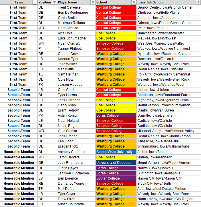 Wartburg is playing in round 2 of the NCAA Playoffs this Saturday at home after a perfect 10-0 regular season and leads the honor list with 14 former Iowa High School players who earned all-conference honors.