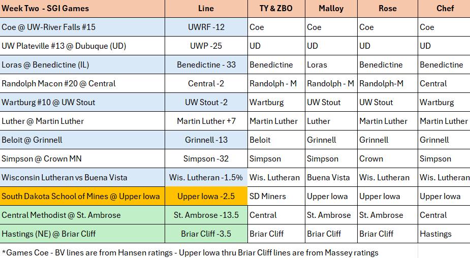 Our SGI Sports team got together for our second pick ’em football podcast of the year. We picked 11 DIII, DII, and NAIA Games involving the teams we cover in Iowa.