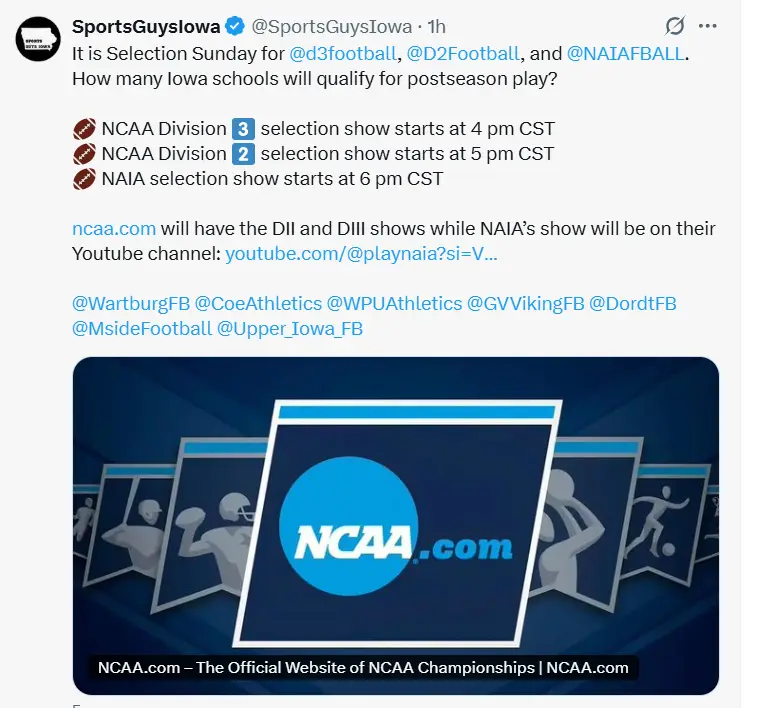 There are 7 teams in Iowa anxiously awaiting postseason news in their divisions NAIA, D3, D2, and FCS (Pioneer League).