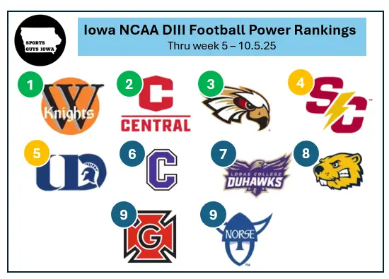 The season is far from over, with teams in the mid-range having a lot of opportunities to move up to the upper tier, yet this fall. Will King Wartburg remain on the Iowa DIII throne again in 2025?